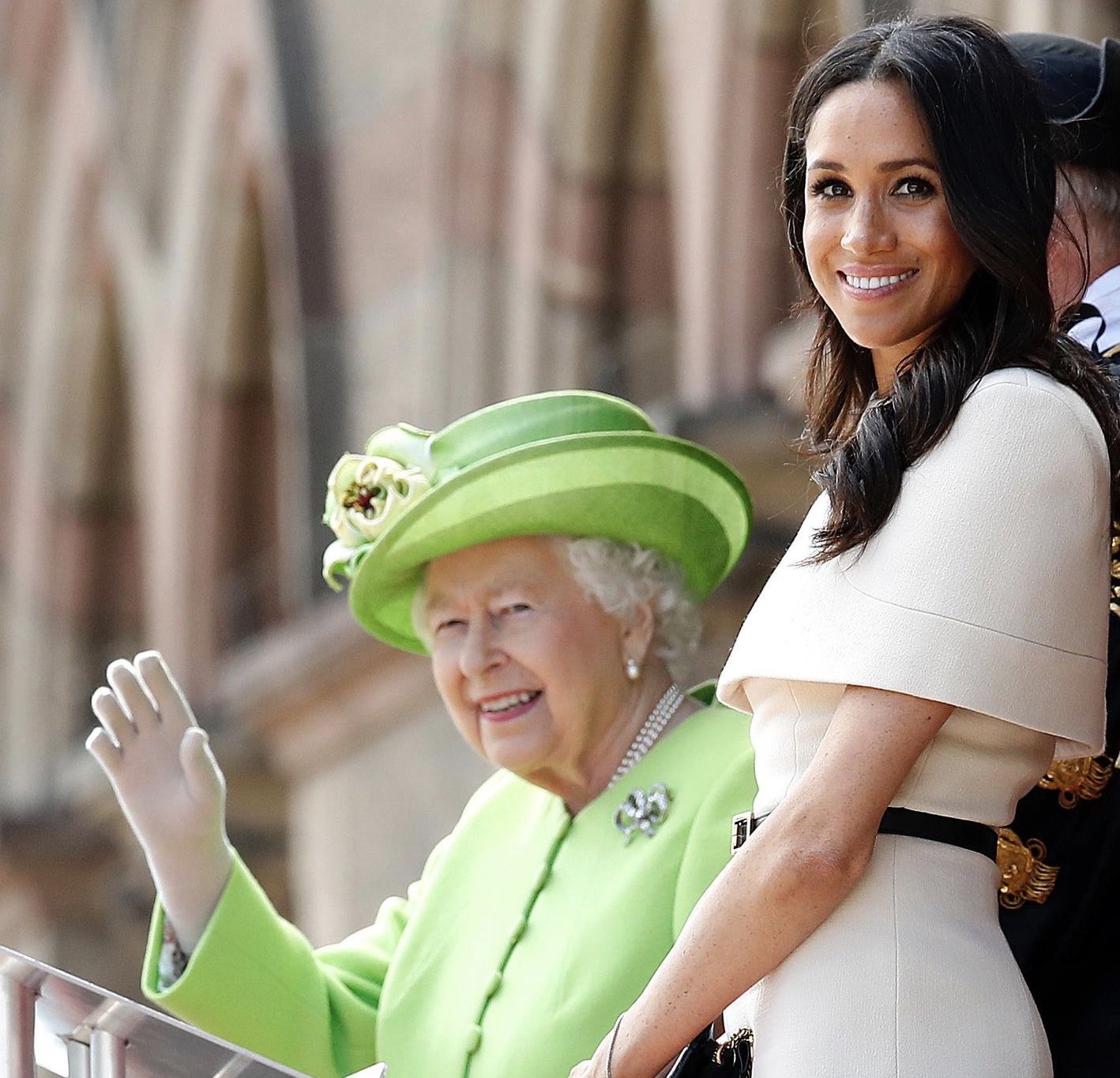 "Поздравляем герцогиню Сассекскую с днем рождения!" - говорится в социальных сетях королевы. На выбранном фото Елизавета II и Меган Маркл запечатлены во время их совместного визита в Честер в 2018 году.