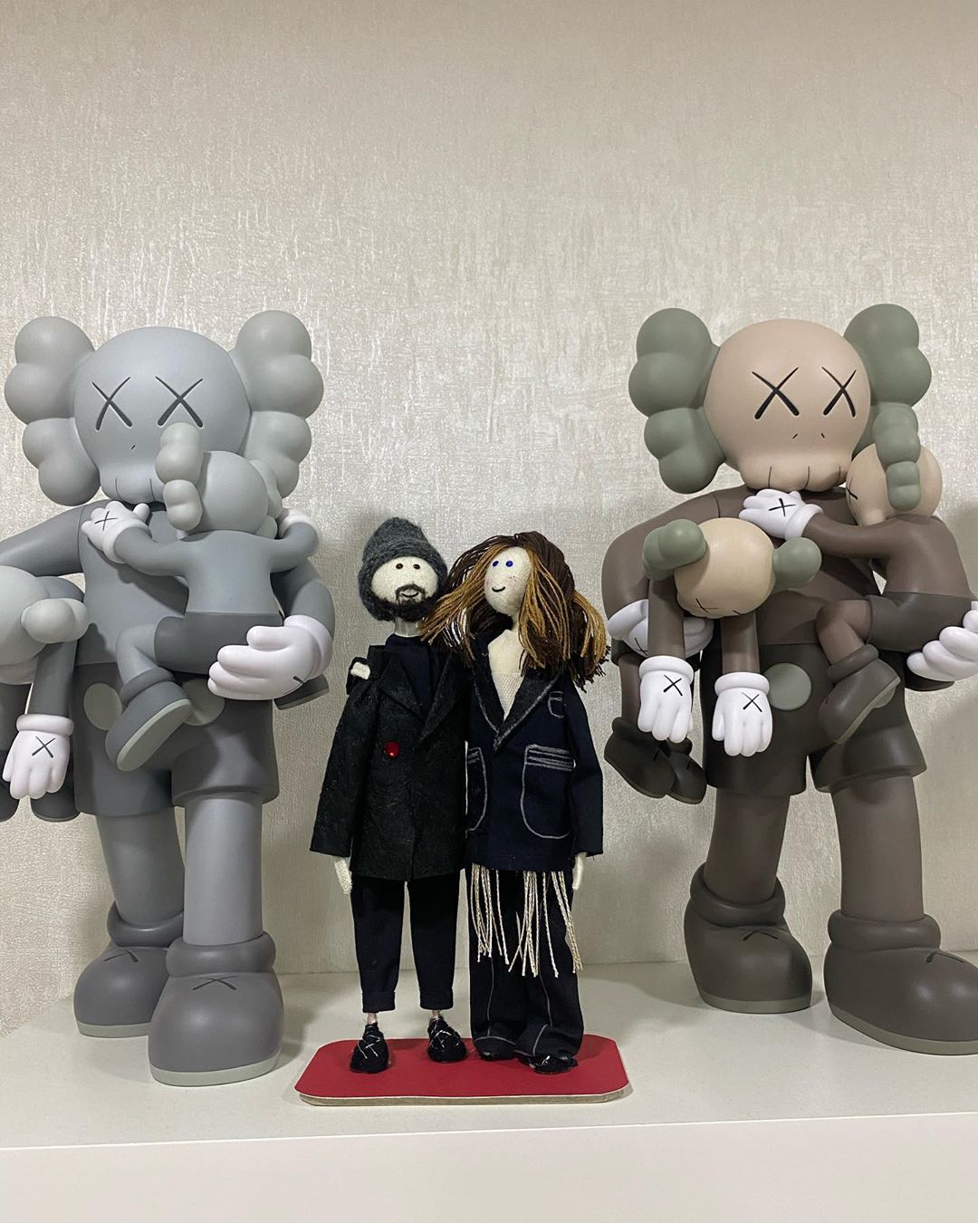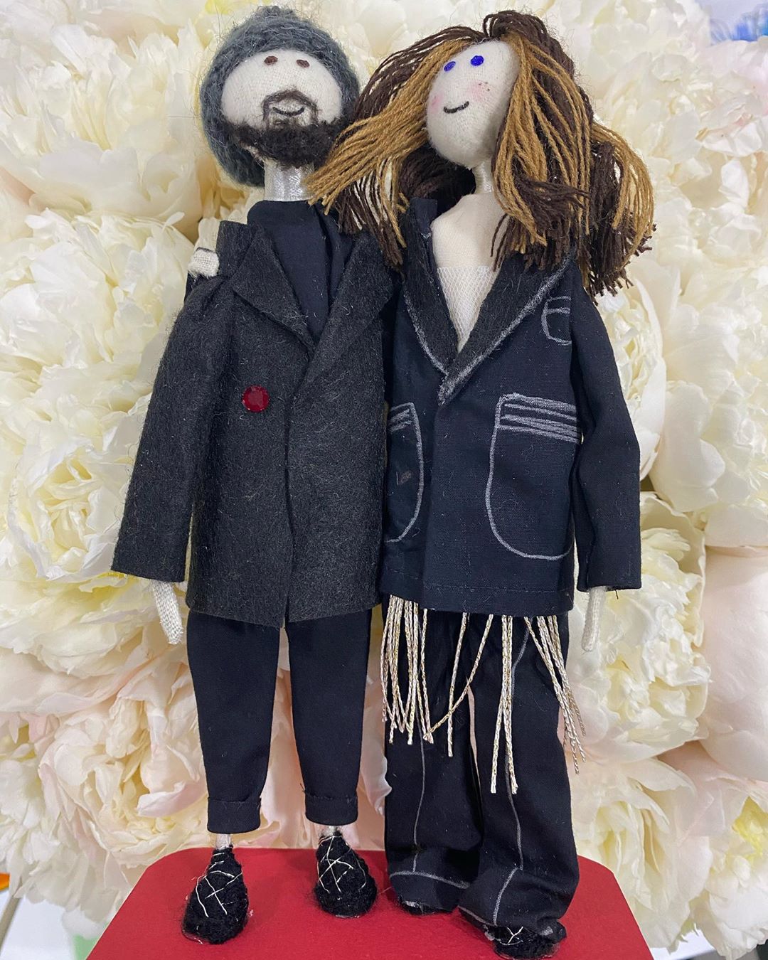 На своих страницах в Instagram звездная пара опубликовала снимки с фигурками - мини копией себя. Публикации они сопроводили теплыми строками.