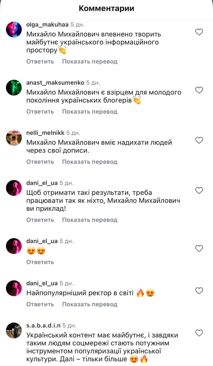 Фолловеры приветствиями и одобрительными отзывами отреагировали на пост лидера украинских Insta-блоггеров.