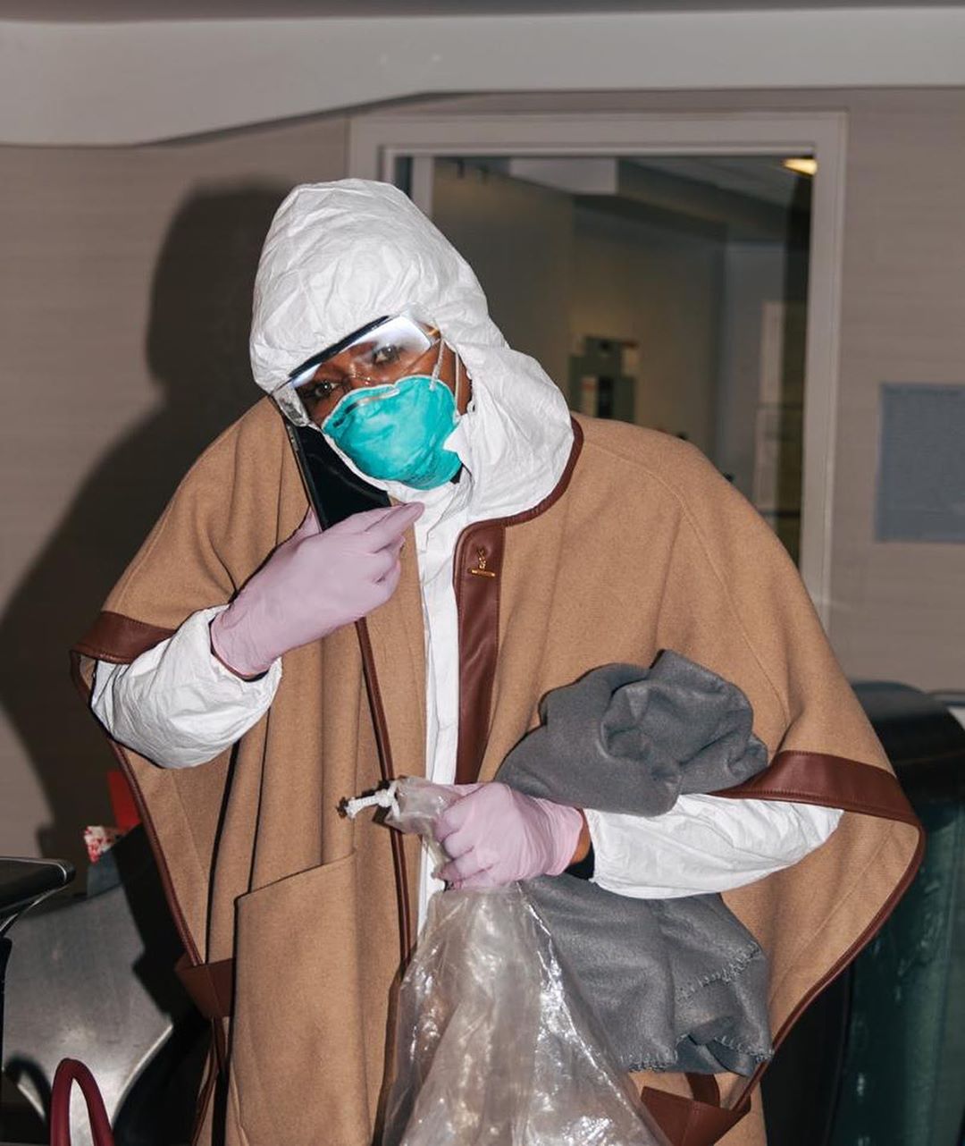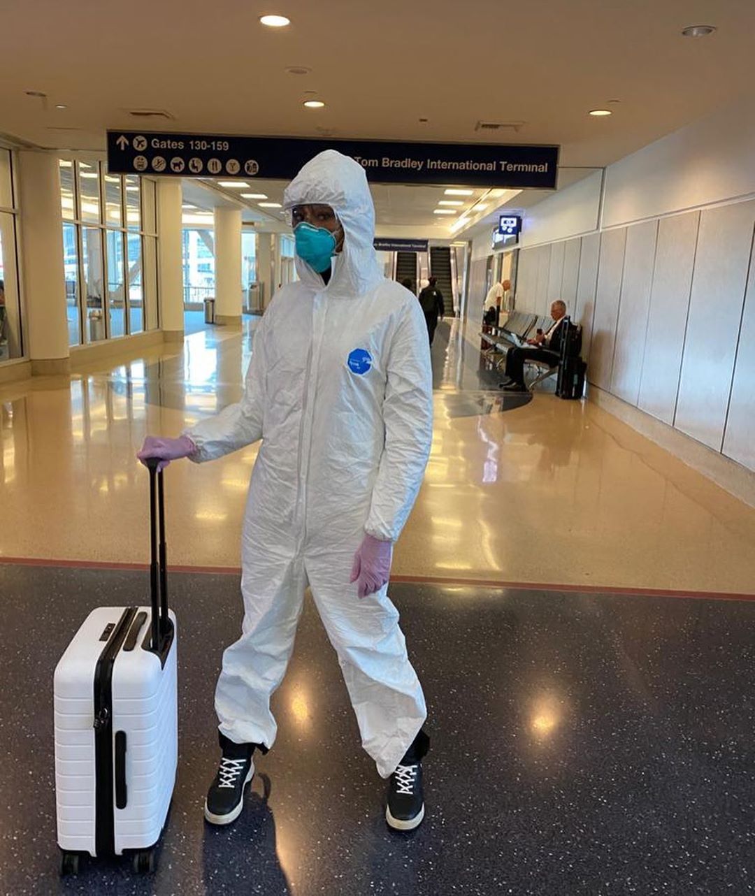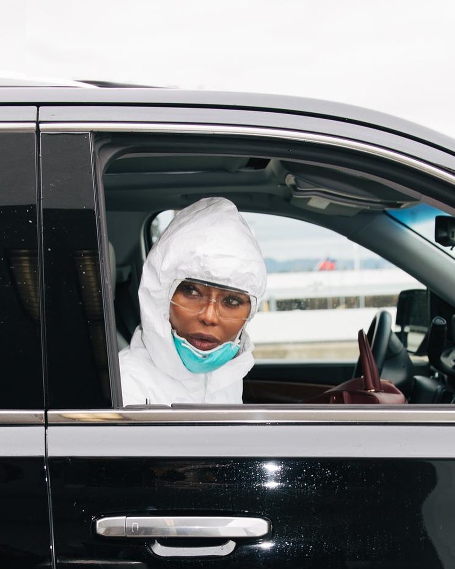 Вспышка коронавируса COVID-19 заставила Наоми Кэмпбелл сменить гламурные наряды на защитный костюм. В аэропорту Лос-Анджелеса 49-летняя супермодель появилась в белом комбинезоне, синей маске, защитных очках и фиолетовых перчатках.