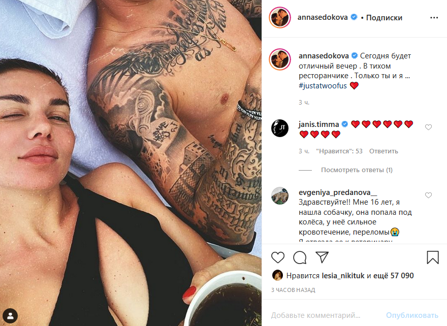 Напомним, что Анна Седокова воспитывает троих детей от разных мужчин. Слухи о романе певицы с баскетболистом появились в августе прошлого года, когда пару заметили на отдыхе в Турции. Пикантности ситуации прибавляло то, что на тот момент Янис состоял в браке. Поговаривают, что из-за Седоковой Тимма бросил жену и маленького ребенка.