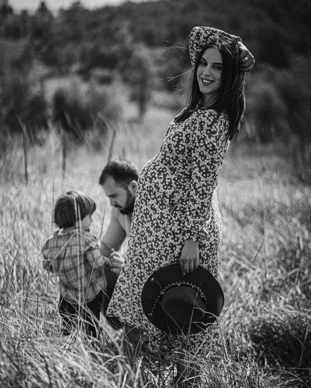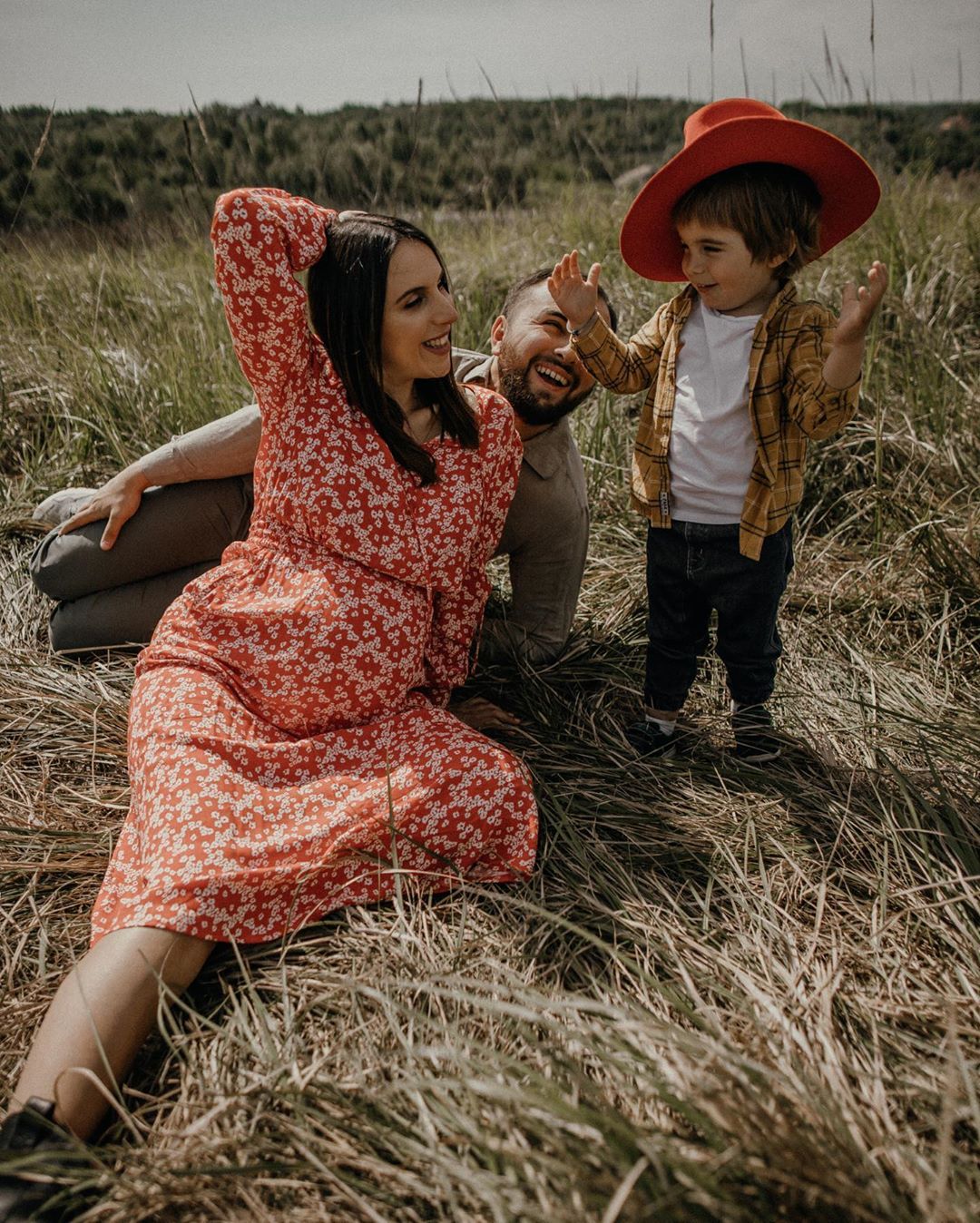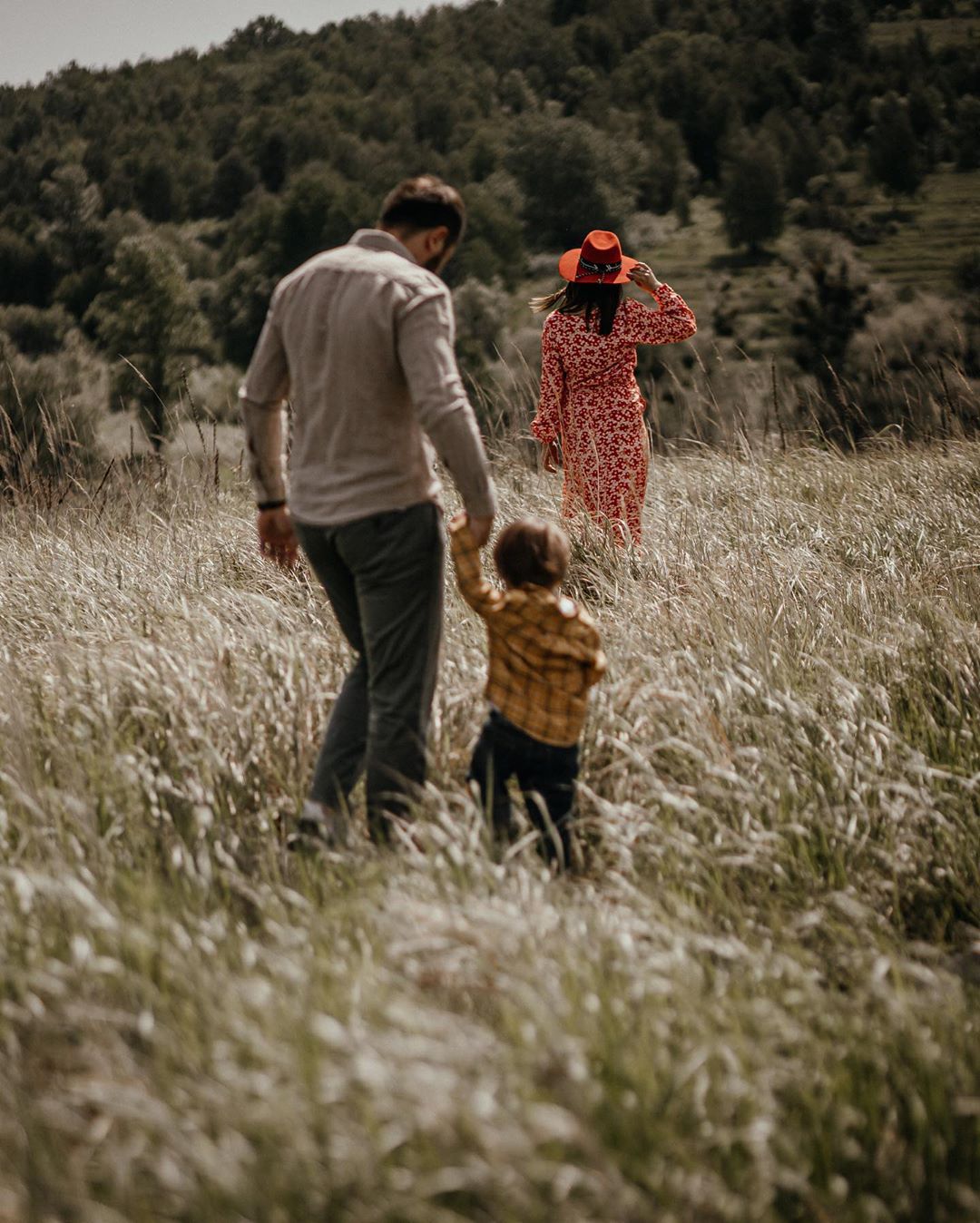 Фотосессию семейство устроило на природе под Киевом. Джамала в женственном цветочном платье и красной шляпке с улыбкой позирует в густой траве и наслаждается буяющей природой. На одном из фото маленький Эмир примеряет мамин головной убор, пока родители со смехом на него смотрят.