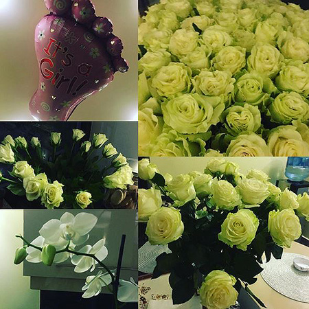 Новоиспеченная многодетная мать опубликовала фото с букетами белых роз и подписала его "Дома".