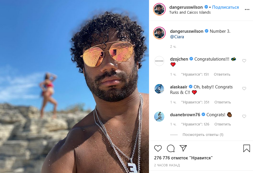 Похожий снимок и с такой же подписью в своем микроблоге опубликовал и супруг певицы, игрок в американский футбол Расселл Уилсон.