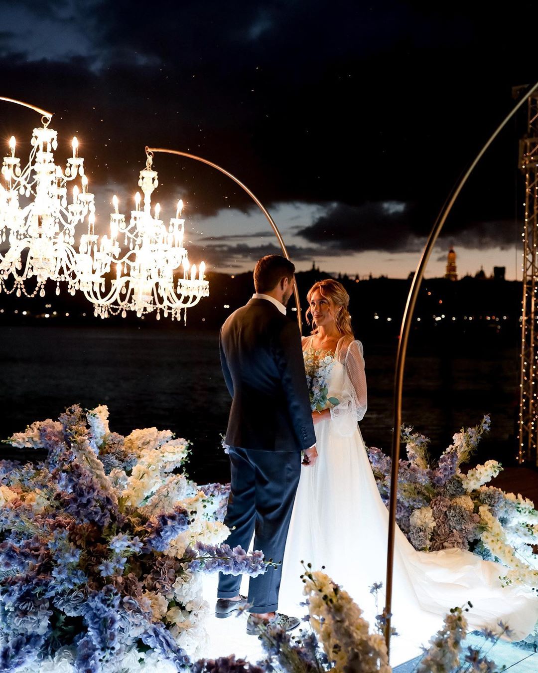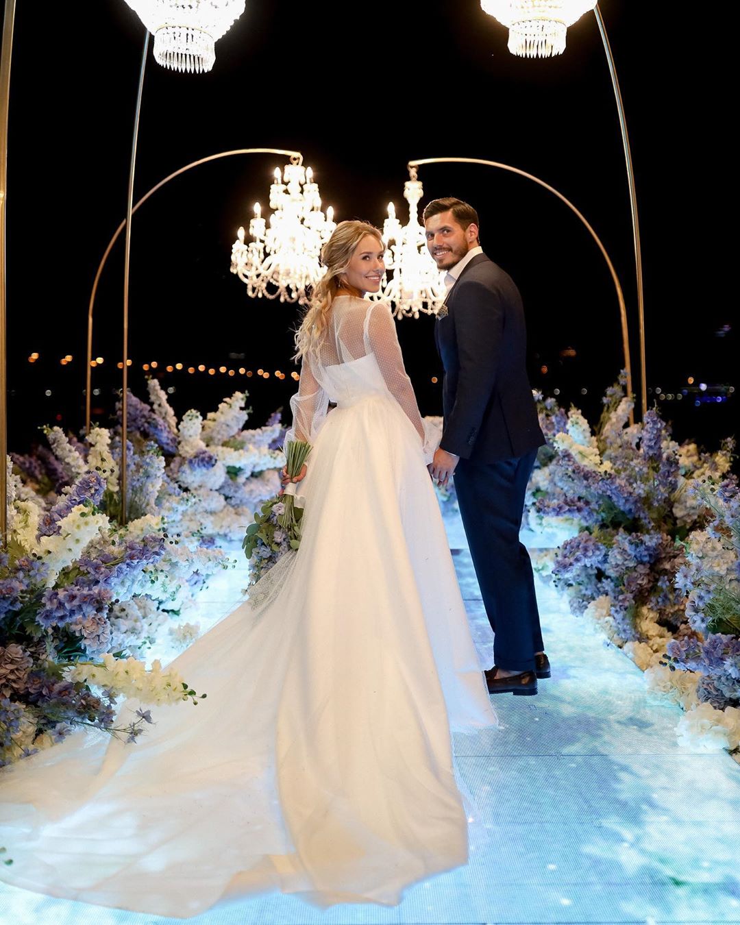 Никита Добрынин и Даша Квиткова сыграли долгожданную свадьбу, которую не раз приходилось переносить из-за пандемии коронавируса. Сказочный праздник прошел 12 августа в столичном ресторане с видом на Днепр. Сверкающие огни, множество цветов и вечерний город - все это создало невероятно романтическую атмосферу.