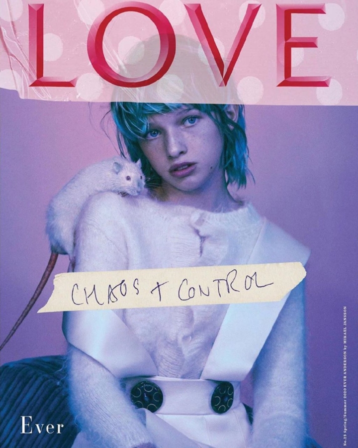 "Моего волшебного маленького единорога Эву Габо Андерсон выбрали для обложки журнала Love в год Крысы! Незабываемо! Обложка и фотографии внутри такие же волшебные, как и она! Я так горжусь своей маленькой феей, потому что она не только следует своей мечте стать актрисой, усердно посещая занятия, прослушивая и получая потрясающие оценки в школе (наше семейное правило - если оценки опускаются ниже B, никаких прослушиваний), но также снялась в большом фильме, который на данный момент совершенно секретен, но будет выпущен всего через несколько месяцев!" - написала Йовович.