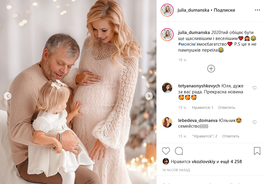 Украинская певица Юлия Думанская, исполнительница хитов "Двічі в одну річку не війдеш" и "Пробач", готовится к рождению второго ребенка.