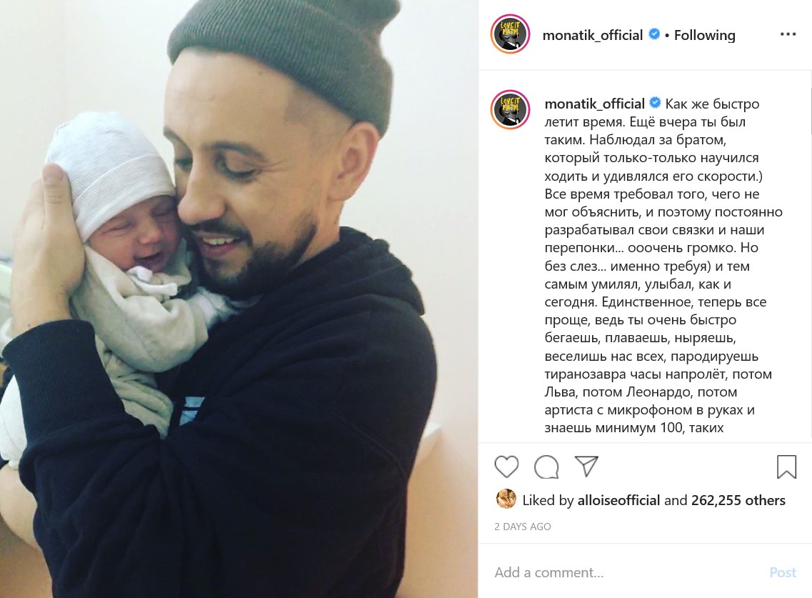 В скором времени пост MONATIK"а собрал более 200 тыс. лайков и более тысячи комментариев, в которых поклонники певца принялись гадать, на кого же похож мальчик. В большинстве случаев утверждают, что на папу. Так ли это, покажет время.