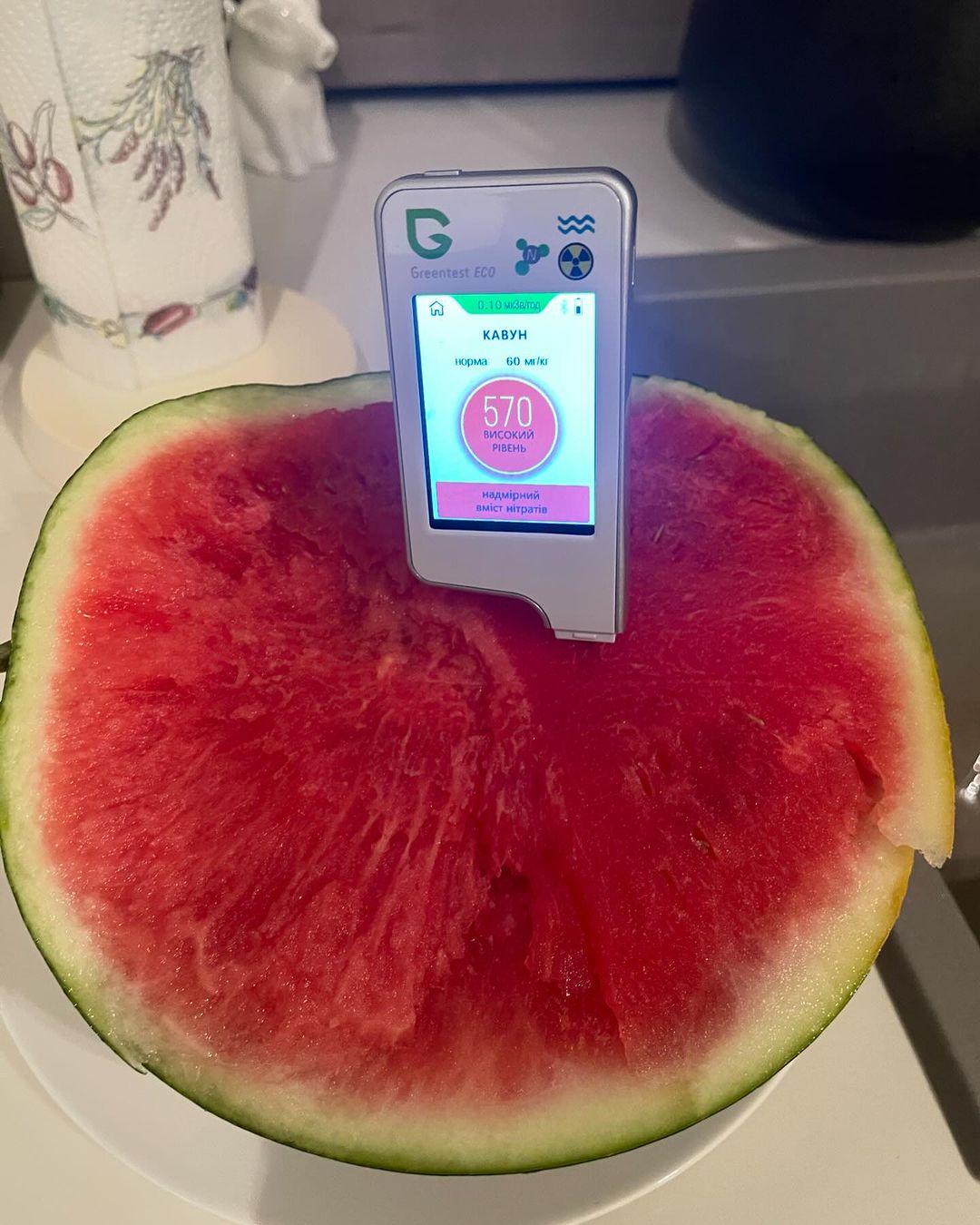 "Купил в маркете арбуз и померил нитратомером! Времена меняются - арбузы нет!" – прокомментировал Горбунов.