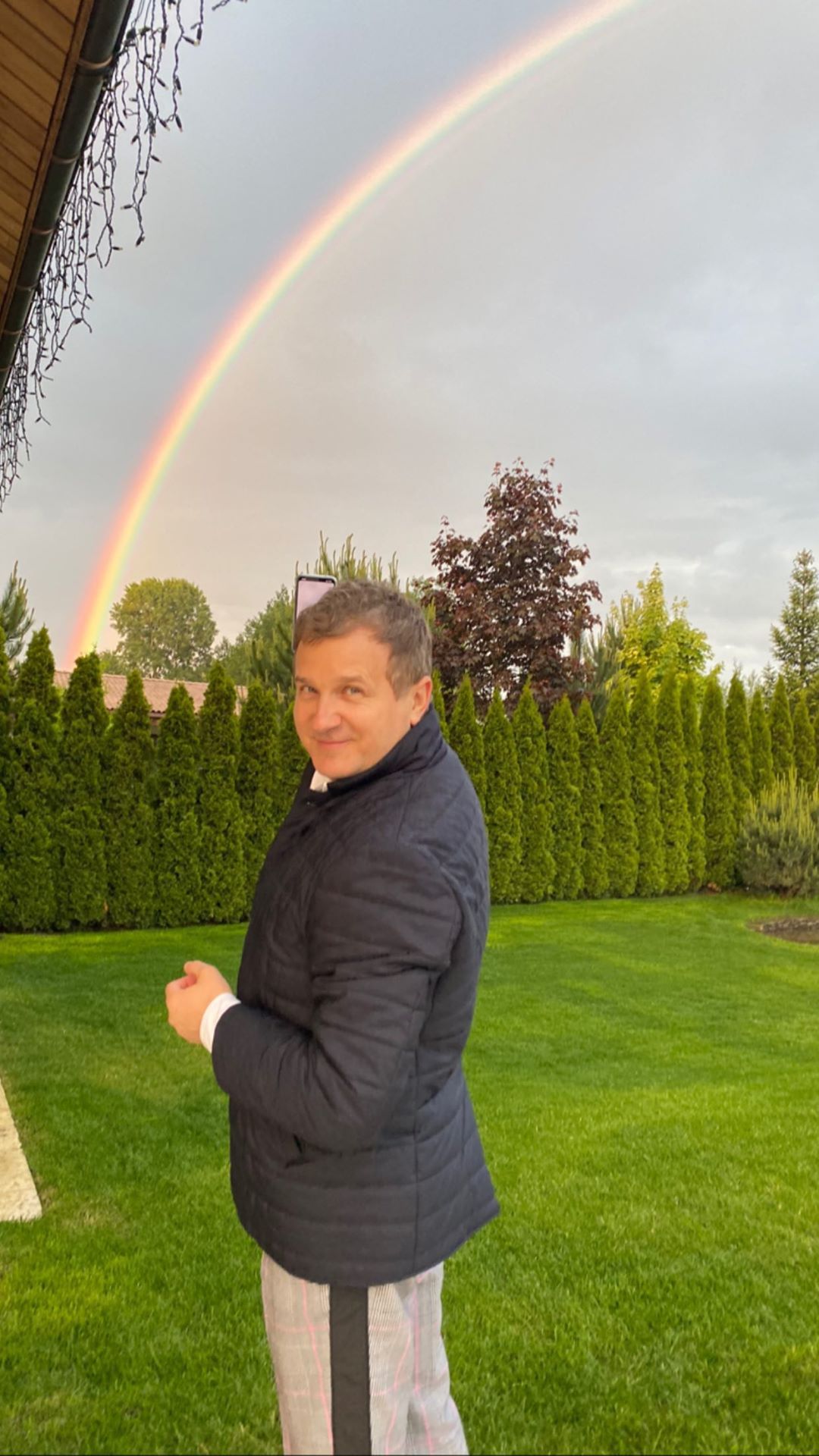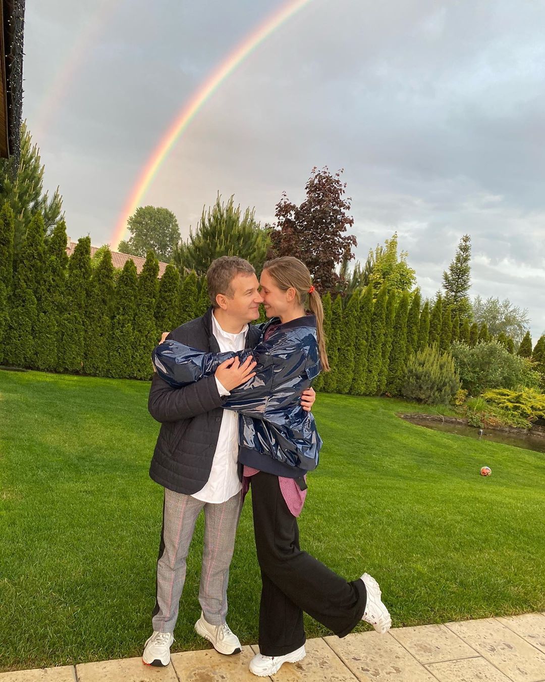 Так, на своих страничках в Instagram знаменитости опубликовали сочные фото, на которых позируют на фоне радуги. Один снимок получился очень романтичным - супруги стоят не зеленой лужайке, нежно обнимаются, прислонившись друг к другу лицом. "Радуга всегда вдохновляет", - написал Горбунов.