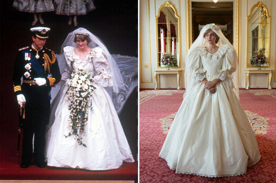 Недавно Netflix впервые показал зрителям кадр с Эммой Коррин в свадебном платье - оно максимально повторяет наряд, в котором леди Ди вышла замуж за принца Чарльза летом 1981 года. Как оказалось, дизайнерам сериала пришлось здорово над ним потрудиться.