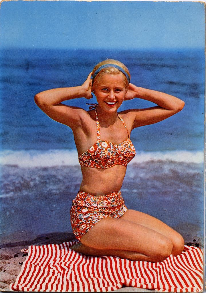 Понадобилось около 10 лет, прежде чем бикини перестали шокировать публику и вошли в моду. В 1950-60-х годах популяризировать бикини стали в кино. Одними из первых в таком купальном костюме появились в кадре актрисы Брижит Бардо ("Манина, девушка в бикини"), Урсула Андресс ("Доктор Ноу"), Рйчел Уэлш ("Миллион лет до нашей эры"). Часто позировала в бикини и известная американская модель и киноактриса, секс-символ Мэрилин Монро.
