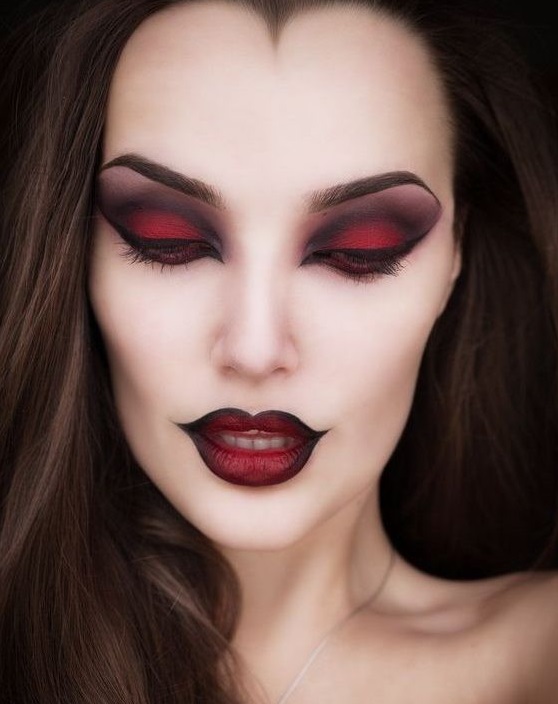 Дьявольский, но в то же время утонченный образ можно создать даже из двух цветов – красного и черного, грамотно сочетая их в макияже.