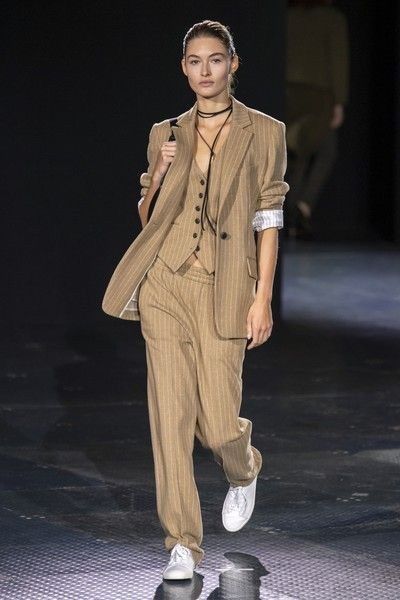 В нынешнем сезоне популярны костюмы, состоящие не только из брюк и пиджака, но и с жилетом. Но даже такой костюм вы смело можете надеть с кроссовками или кедами и отправиться на прогулку в парк.