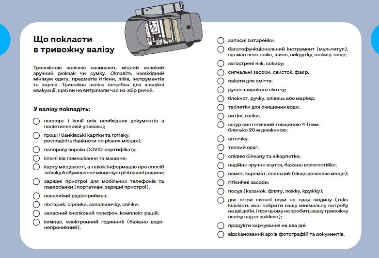- карта местности, а также информация про способ связи и оговоренное место встречи вашей семьи;