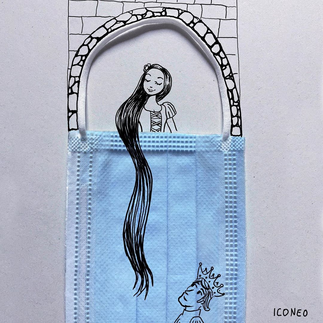 Немецкий художник Штефан Крафт решил интегрировать медицинские маски для лица в свое творчество. Он создает иллюстрации, превращая защитный аксессуар в настоящее произведение искусства.
