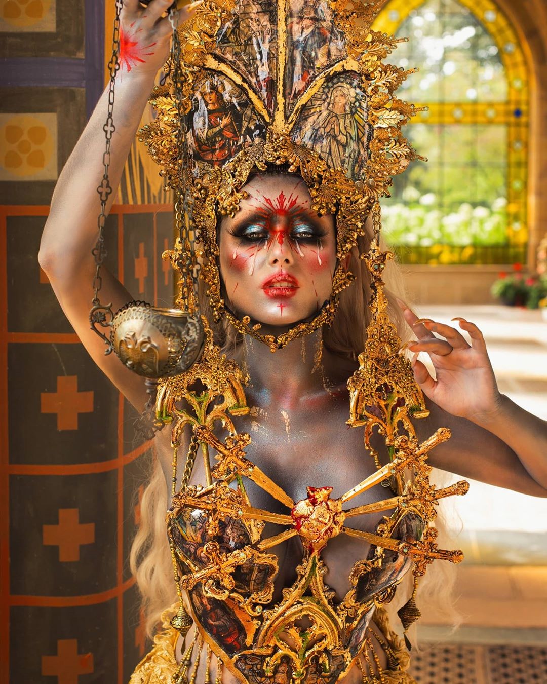 Затем креативной девушке захотелось, чтобы ее образы были законченными и она взялась за изготовление головных уборов, корсетов и различных аксессуаров. Костюмы этой талантливой самоучки настолько потрясающие, что некоторым профессиональным стилистам и не снилось.
