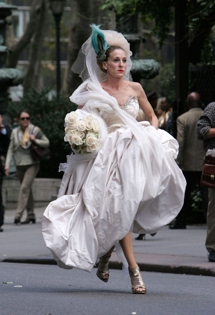 Еще одно культовое платье от Вивьен Вествуд появилось в фильме "Секс в большом городе" 2008 года. Сару Джессику Паркер в роли Кэрри Брэдшоу одели в объемное платье без бретелек для свадьбы с мистером Бигом.