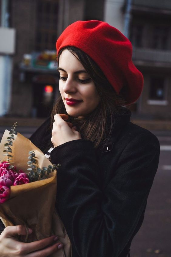 Этот головной убор у многих ассоциируется с утонченными француженками и хорошо сочетается с длинным пальто и обувью на высоком каблуке.