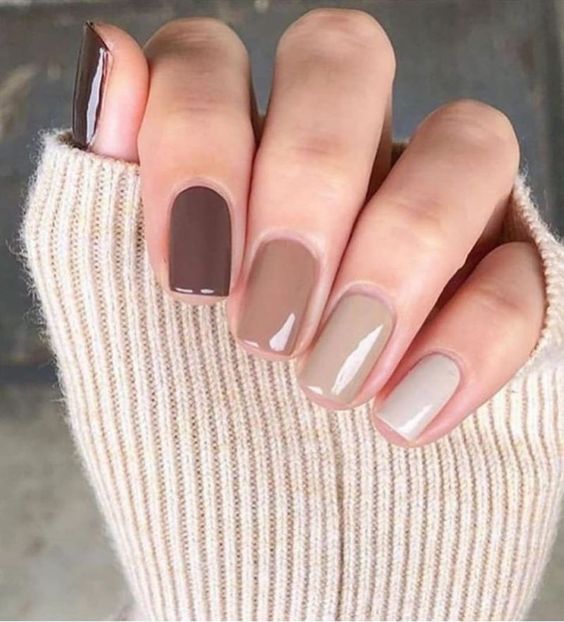Также можно сделать маникюр с градиентом с растяжкой цвета от ногтя к ногтю – для этого вам понадобится пять разных лаков подобных оттенков.