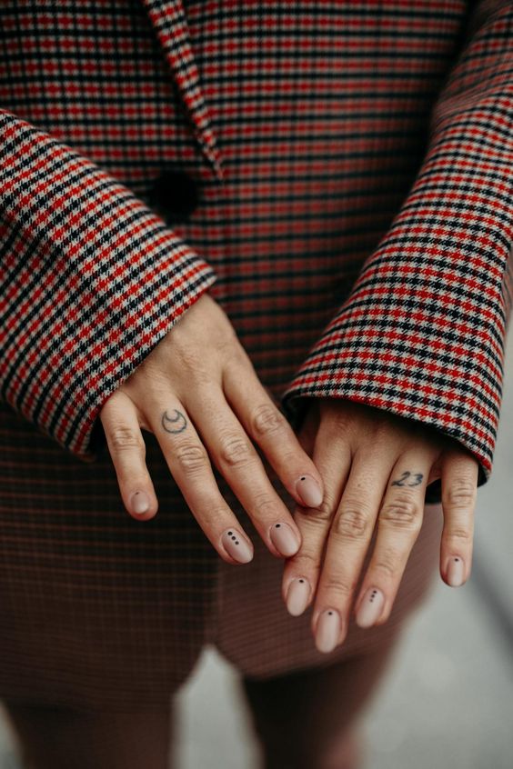 Однотонный нюдовый маникюр можно разбавить эффектной геометрией, например, точками.