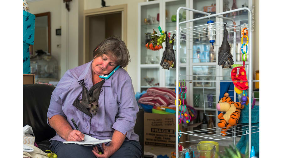 Спасатель и опекун диких животных Джули Малерб принимает вызов, одновременно ухаживая за тремя осиротевшими сероголовыми летучими лисицами.