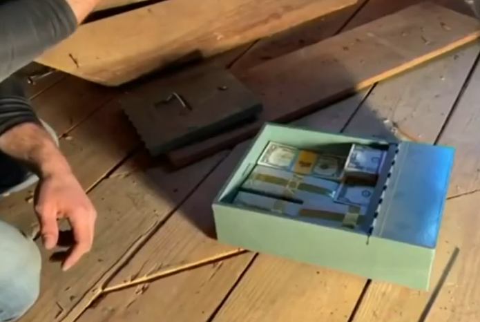 Устройство показало, что под досками пола есть металлический ящик, и когда Кит вместе с хозяевами подняли половицы, то смогли в этом убедиться. Открыв коробку, семья потеряла дар речи - внутри лежали купюры, перевязанные банковскими ремнями. Пара сразу подсчитала сумму и пришла в шок, ведь все это время в их доме хранилось 46 тысяч долларов.