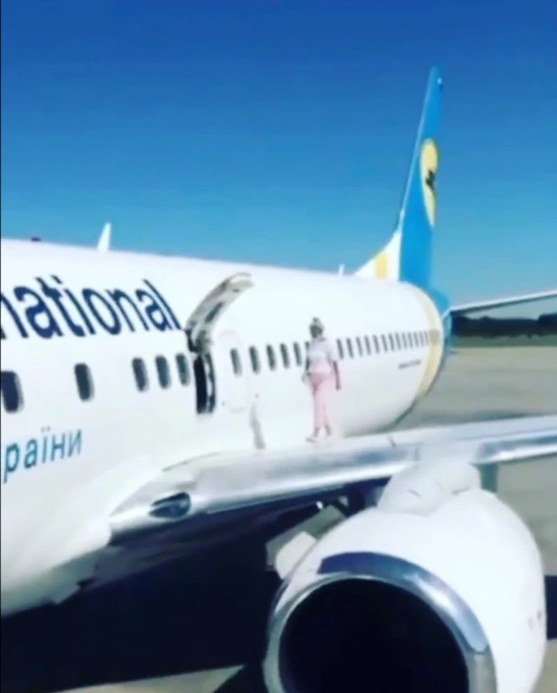 Пассажирка авиакомпании "Международные авиалинии Украины" (МАУ) прогулялась по крылу самолета, после чего стала звездой сети.