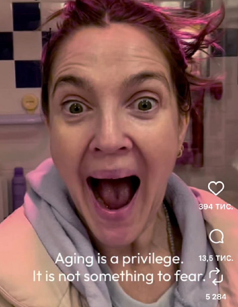 Дрю показала видео, где она без мейкапа и без прикрас - такая как есть в свои 50.