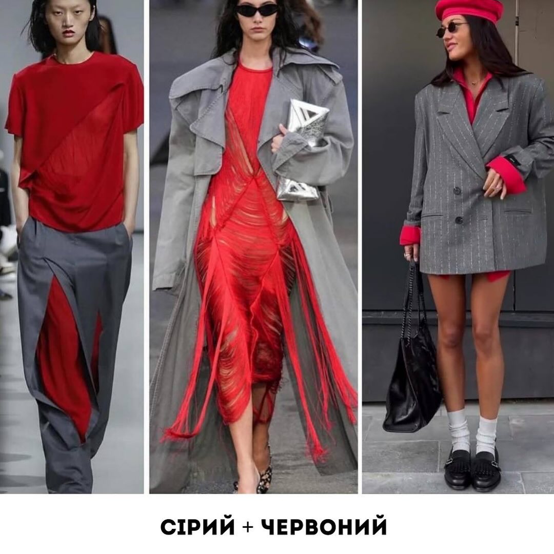 Серый и красный – это классика, которая никогда не выходит из моды. Со светлыми оттенками серого красный смотрится празднично; а темные же усиливают строгость.