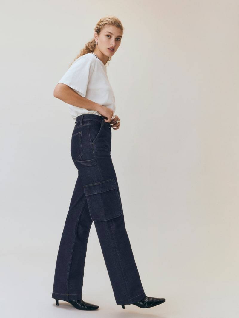 Также на пике популярности широкие джинсы с накладными карманами – карго. Такой трендовый фасон можно сочетать с водолазками и свитерами, а обувь и аксессуары выбрать в зависимости от погоды и настроения.