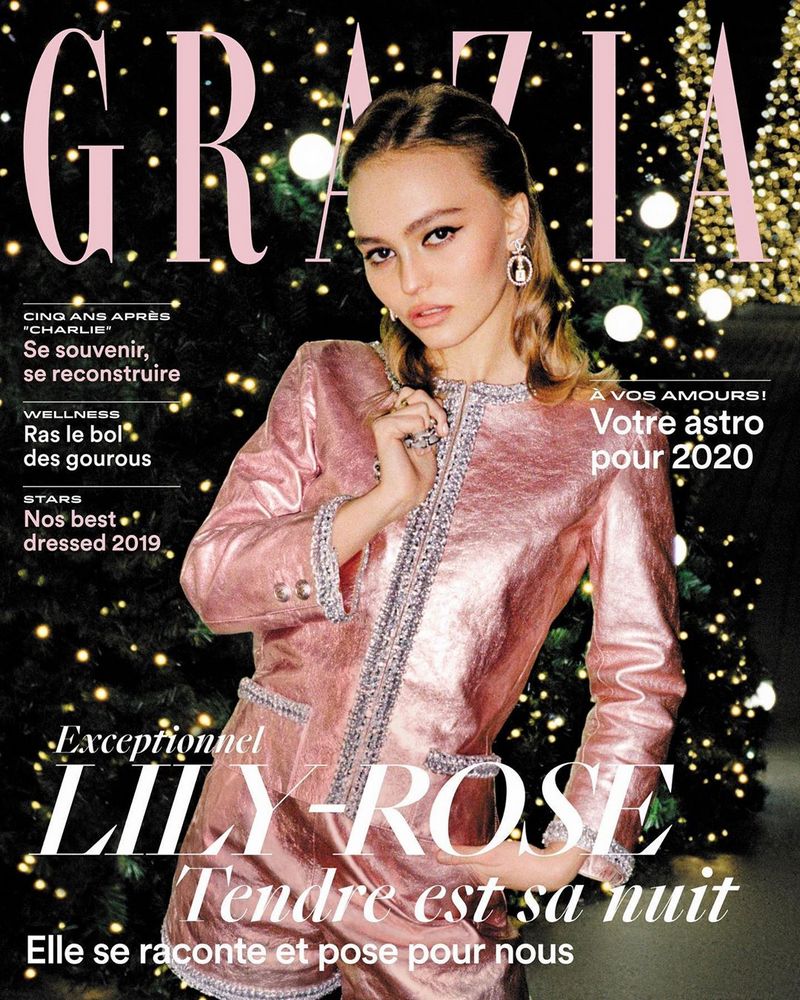 Дочь голливудского актера Джонни Деппа и актрисы Ванессы Паради Лили-Роуз стала героиней праздничного номера французского глянцевого журнала Grazia.