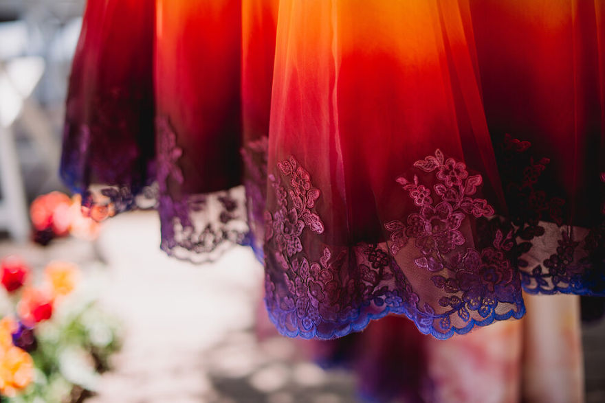 Еще задолго до свадьбы художница твердо решила, что не станет надевать традиционное белое платье. Тогда же она загорелась идеей раскрасить свадебный наряд так, как этого никто не делал ранее. И для этого ей понадобилась неделя.