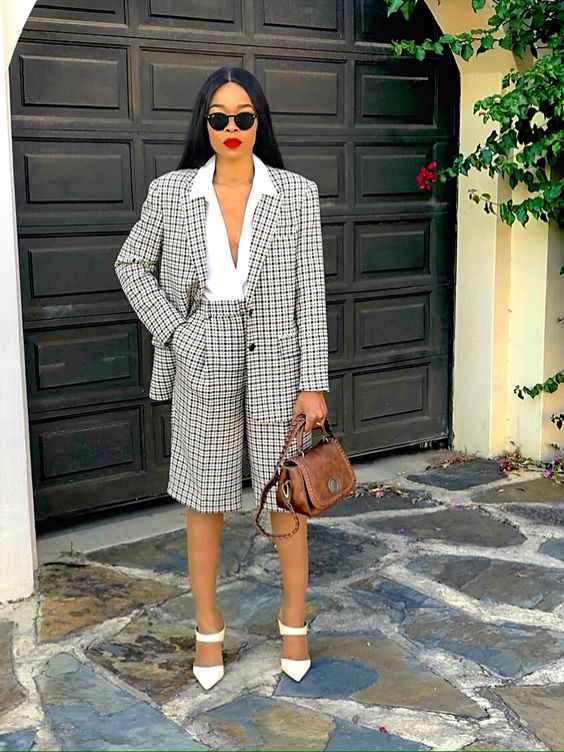 Если у вас уже есть однотонный летний костюм с шортами, присмотрите также модель в полоску или же в клетку. Дополнить его можно однотонным топом, белыми кедами и небольшой сумкой через плечо или же блузой и трендовыми балетками.