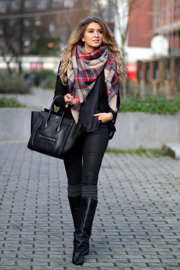 Также в моде клетчатые шарфы, их можно носить с пальто, тренчами, кожаными курточками. Неплохой идеей будет надеть такой шарф с однотонным пиджаком или джинсовой рубашкой.