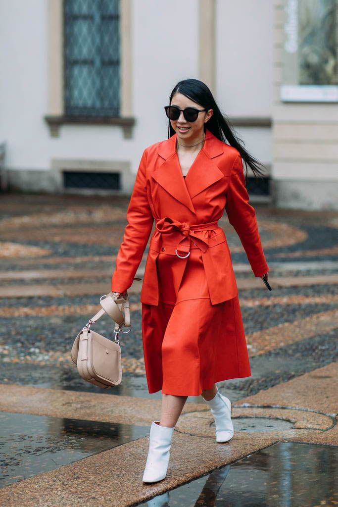 Также в списках трендов сейчас яркий коралловый красный, также известный как "лососевый". Он отлично сочетается с вещами белого, молочного, черного и коричневого цветов.