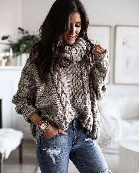 Отметим, что самыми трендовыми в этом сезоне считаются серый и бежевый свитера с крупной вязкой "в косичку", однако вы можете выбрать и другие расцветки. Самый модный вариант – надевайте свитер оверсайз с любимыми джинсами и удобной обувью.