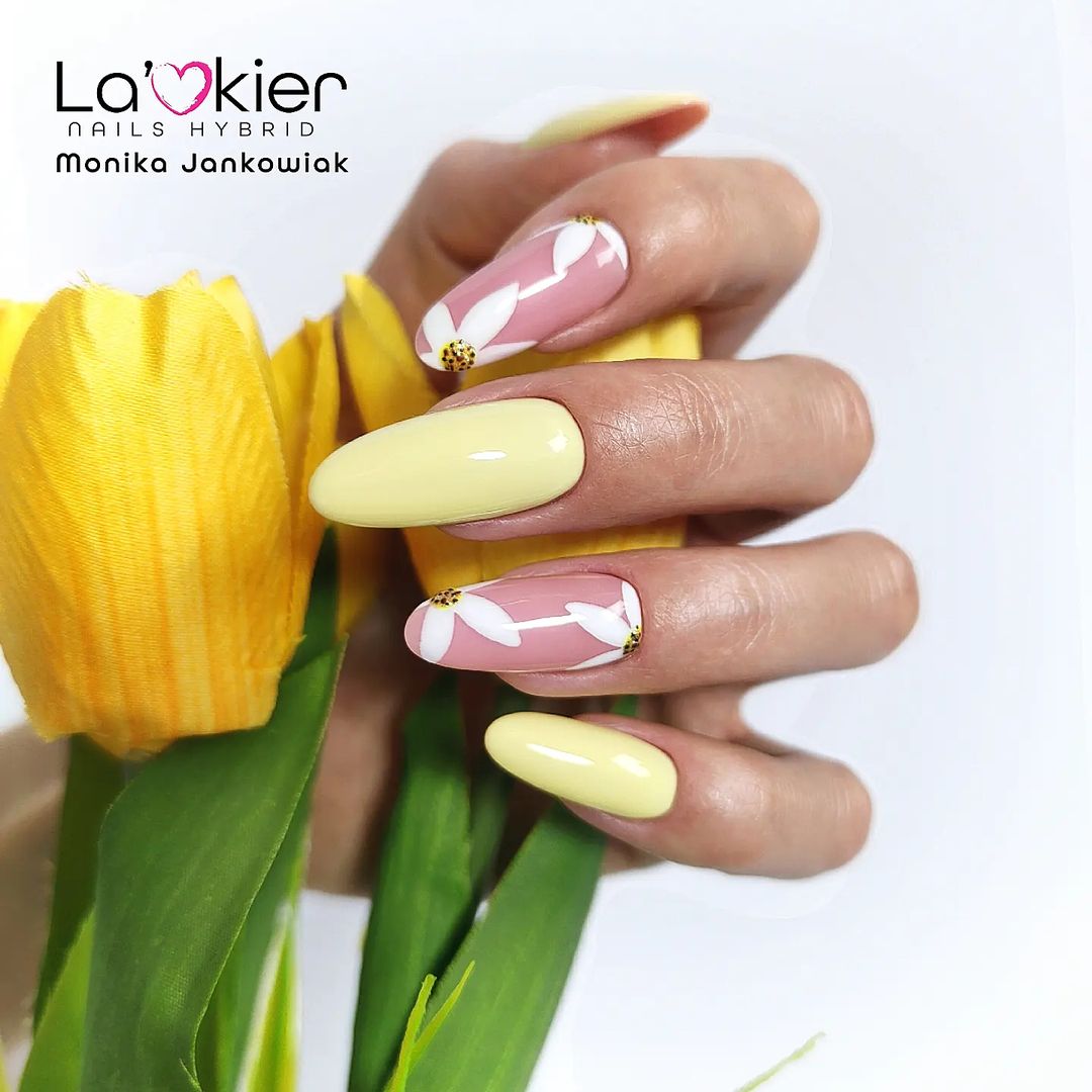 А если вы любите нестандартные идеи, выбирайте для маникюра пастельные оттенки, например, нежно-желтый. А на одном или двух ногтях сделайте весенний дизайн с рисунками цветов.