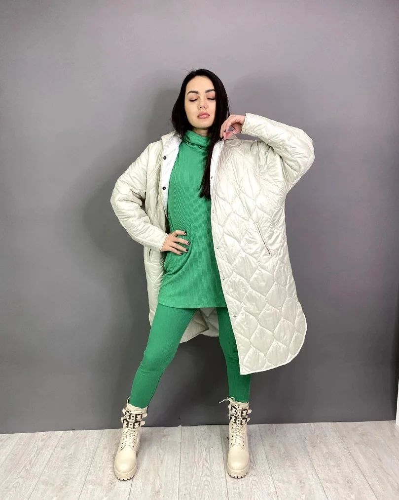 Для настоящего весеннего лука присмотрите ярко-зеленые трикотажные леггинсы в рубчик. Надевайте их с водолазкой-туникой и стеганной курткой, например, белого цвета. Дополните образ грубыми ботинками и небольшим рюкзаком.