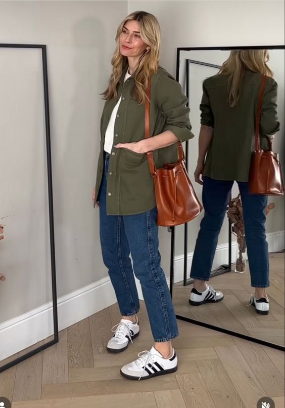 Джинсы хорошо сочетаются со спортивной обувью. Вы можете выбрать классические кроссовки, модель на массивной подошве или же кеды. С такой обувью и брюками из денима можно создать много стильных повседневных луков.