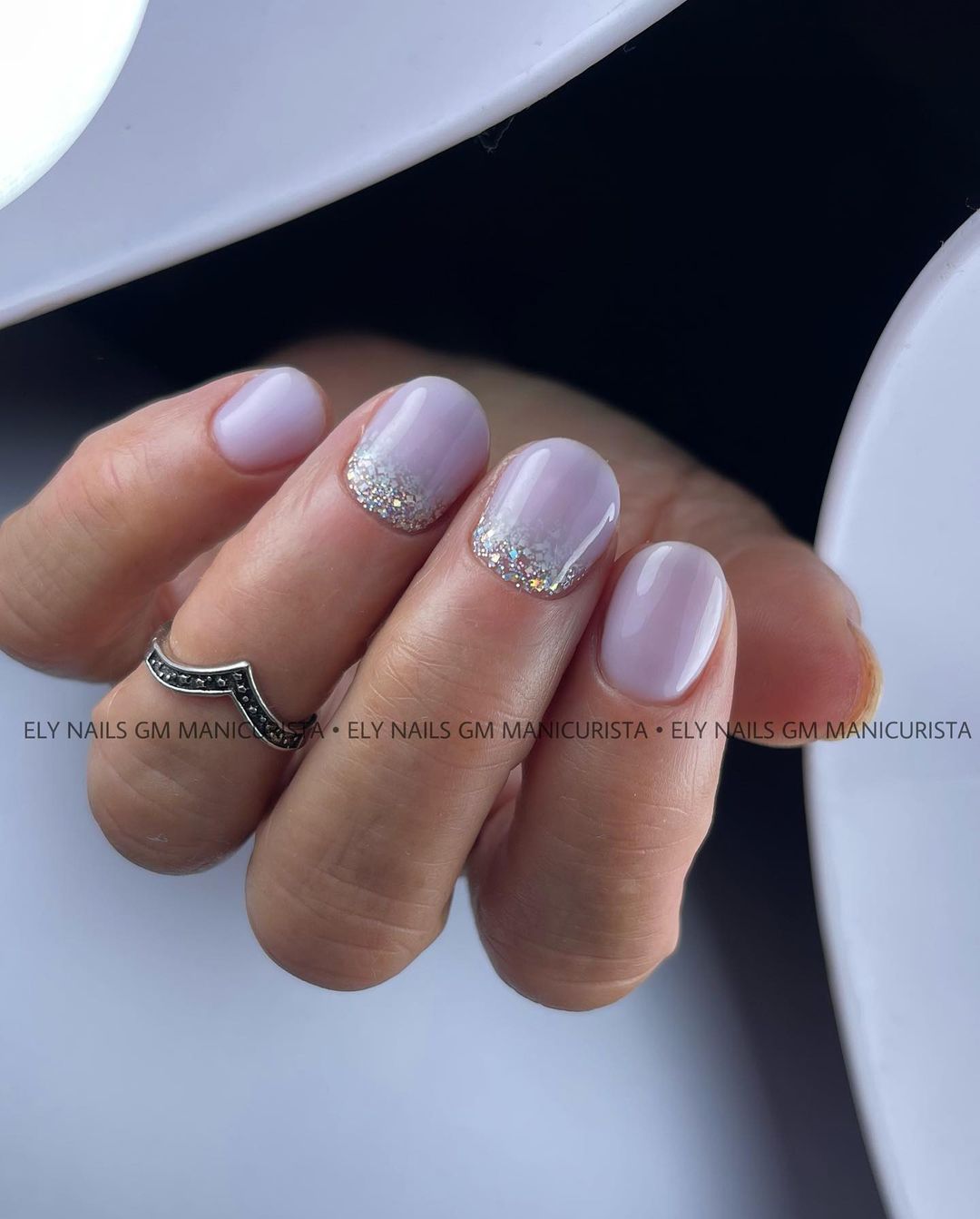 Если вы хотите выделяться, разбавьте однотонное серо-бежевое покрытие блестками. Вы можете нанести их только у основания ногтя на нескольких пальцах или же на кончик. Как вариант – можно выбрать более насыщенный основной цвет и серебристые или золотистые блестки.