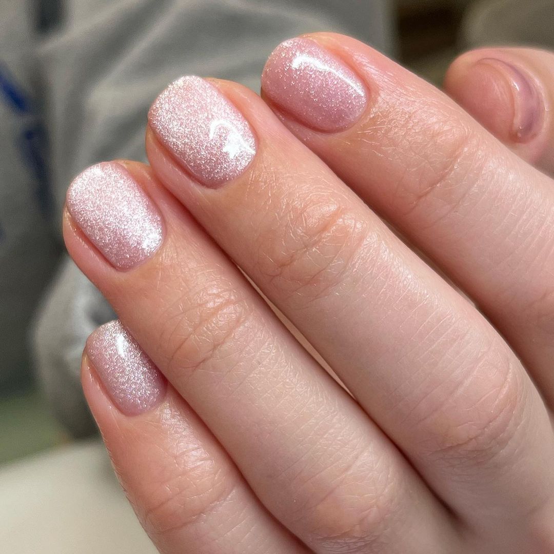 Еще один трендовый дизайн – вельветовый маникюр.Особенность такого нейл-арта заключается в том, что покрытие получается сияющим и переливается разными оттенками. Выбирайте яркий цвет или же нюдовый.