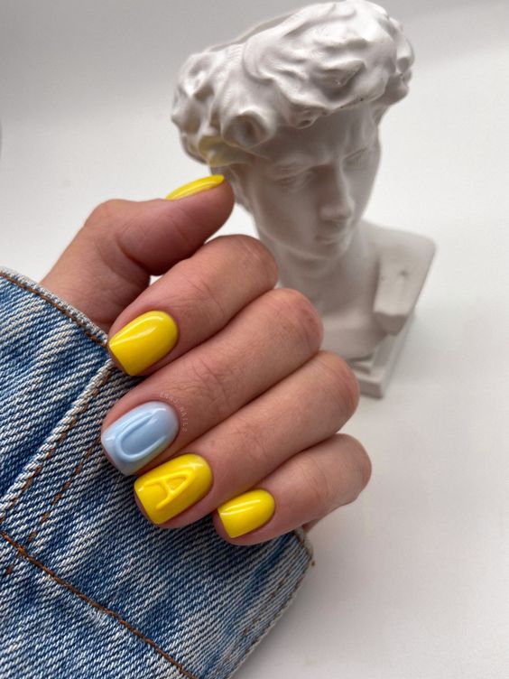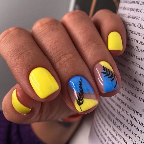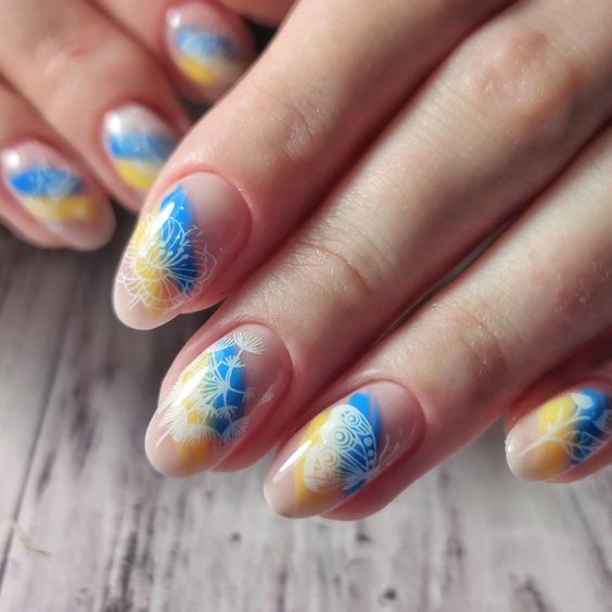 На фоне полномасштабного российского вторжения Украину накрыла волна патриотического подъема – многие украинки все чаще подчеркивают свою идентичность нарядами, аксессуарами и маникюром в патриотической гамме. Вы можете сделать стильный нейл-арт с идеальной комбинацией голубого и желтого и дополнить такой дизайн стемпингом, объемными рисунками или наклейками.
