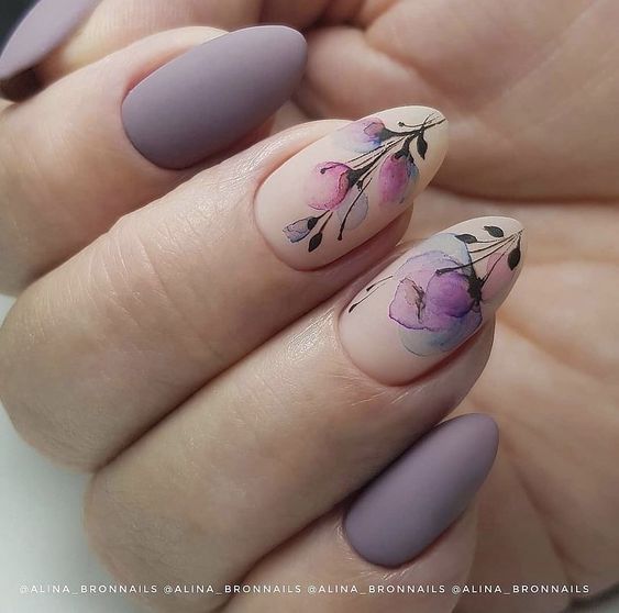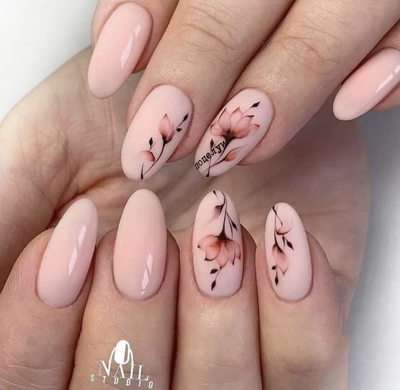 Еще один вариант – украсить один или два ногтя стемпингом или же наклейкой с изображением вашего любимого цветка. Такой нейл-арт будет красиво выглядеть как в глянцевом, так и в матовом исполнении.