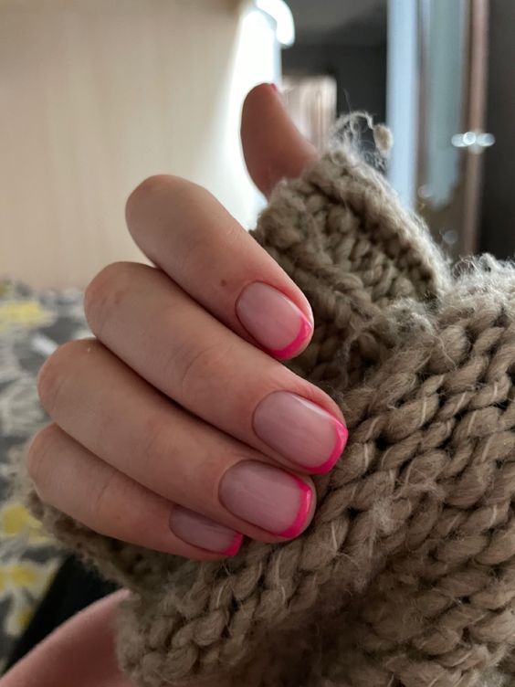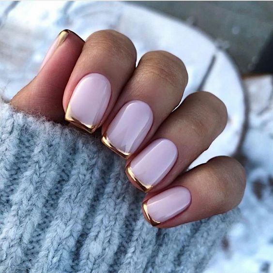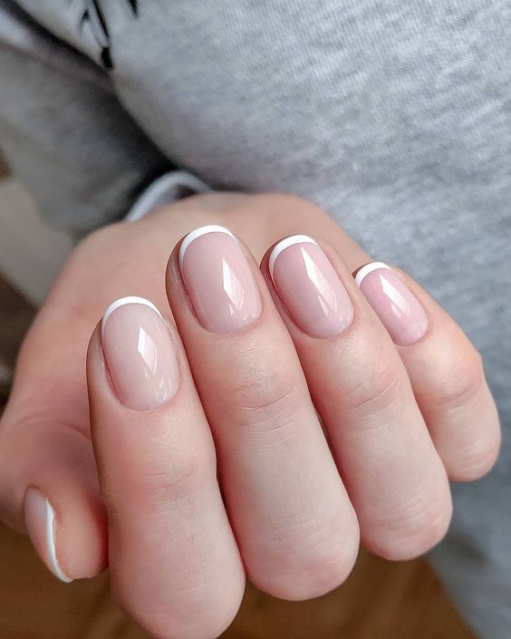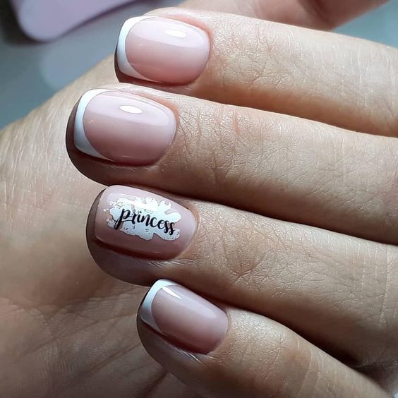 Классический французский маникюр – один из самых распространенных и популярных видов дизайна ногтей. Он выглядит следующим образом: ногтевую пластину покрывают неярким бежевым или пастельно-розовым тоном лака, а на кончик ногтя по форме полумесяца наносится белый цвет. Такой дизайн будет красиво выглядеть как на коротких, так и на длинных ногтях. Разнообразить такой нейл-арт можно ярким оттенком гель-лака на кончике.