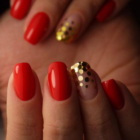 Многие модницы знают, что красный оттенок гель-лака считается неизменной классикой и выглядит роскошно и дорого как на длинных ногтях, так и на коротких. А чтобы придать маникюру некую изюминку, можно дополнить его дизайном с золотом.