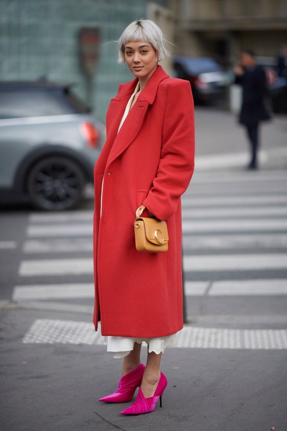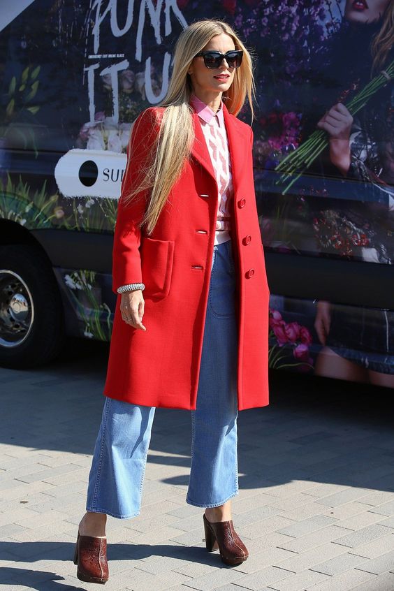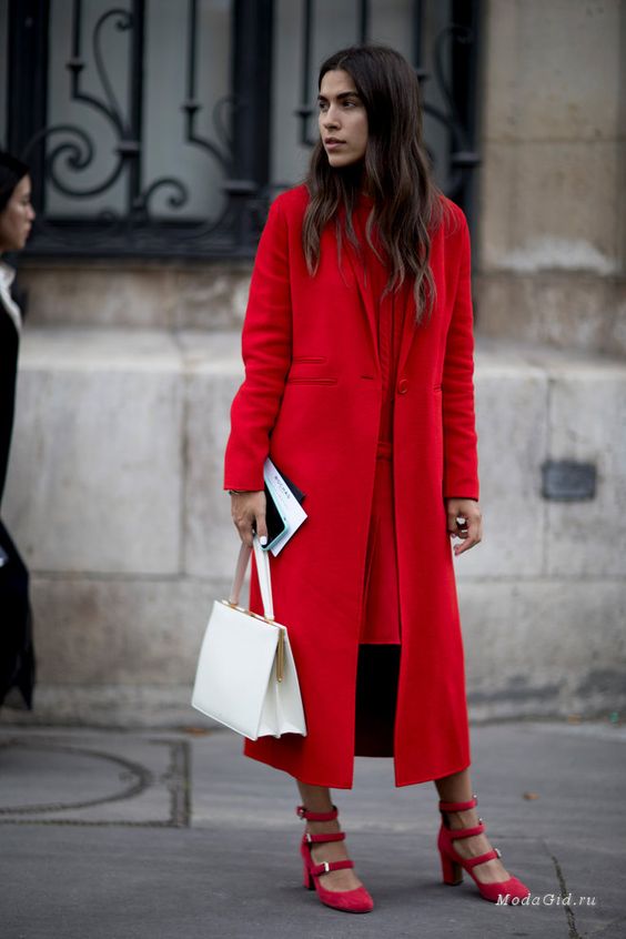 Для более прохладной осени присмотрите красное пальто. Такая верхняя одежда точно будет выделять вас среди серо-черной толпы. Носить его можно как с деловыми костюмами, так и с джинсами или же праздничными нарядами.