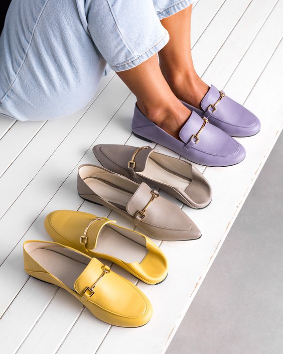 Наиболее распространены лоферы черного, коричневого, бордового и рыжего цветов, но встречаются и синие экземпляры, а также зеленые, бежевые, белые и двухцветные; более того, некоторые фирмы выпускают модели очень ярких цветов – например, ярко-голубого, красного и сиреневого.