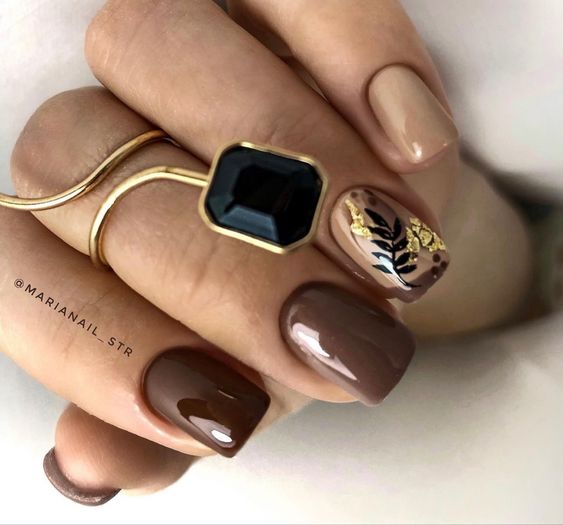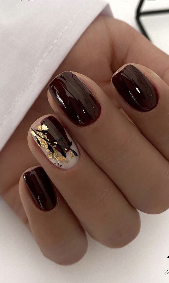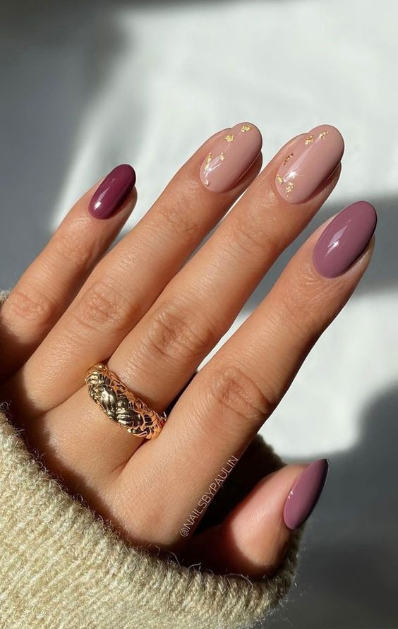 Также в одном маникюре можно сочетать два оттенка, а на их стыке дополнить нейл-арт фольгой золотистого цвета. Или же сделать варинт маникюра омбре, покрыв каждый ноготь разным оттенком.
