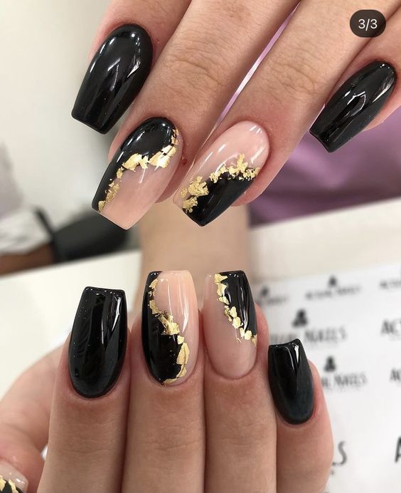 Дизайн с фольгой красиво будет смотреться как на коротких ногтях, так и на длинных, как на светлом покрытии, так и на темном.